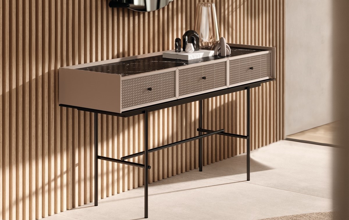 O design da estrutura tubular da consola Cello I segue a estética do instrumento de percussão que o caracteriza. Combinando um tampo sofisticado e três gavetas detalhadas com puxadores de metal,sustentadas por pés de metal que envolvem toda a estrutura, esta elegante consola é uma peça de design adequada para integrar em qualquer ambiente contemporâneo.